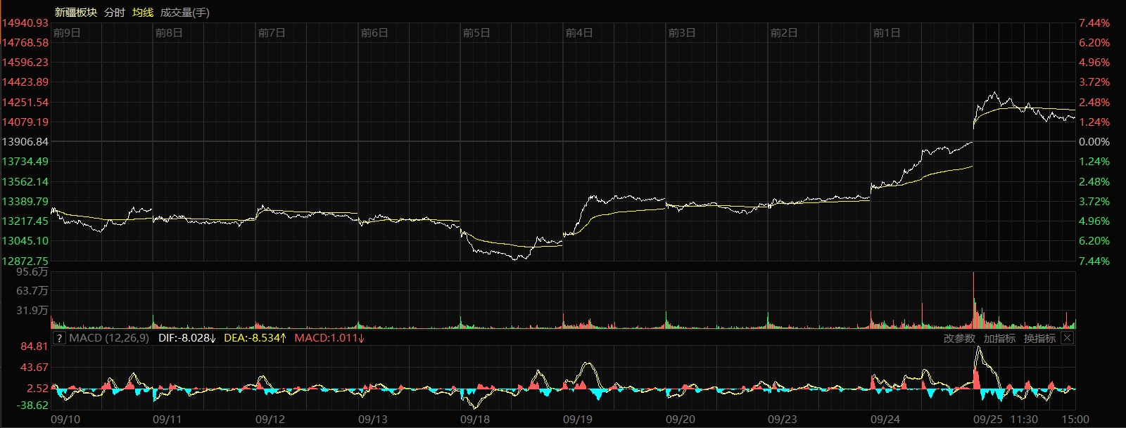 9月25日新疆板块成交金额排名(来自东方财富)。