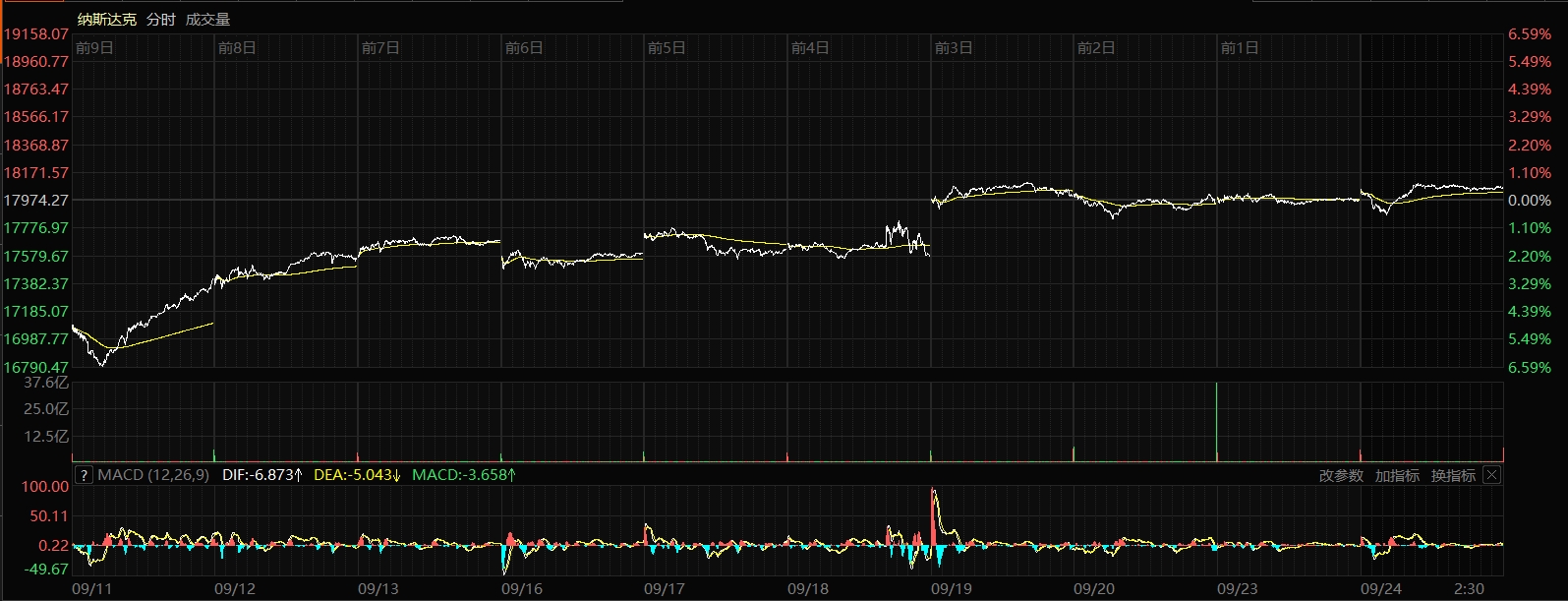 纳斯达克指数近十日变化趋势(来自东方财富)。