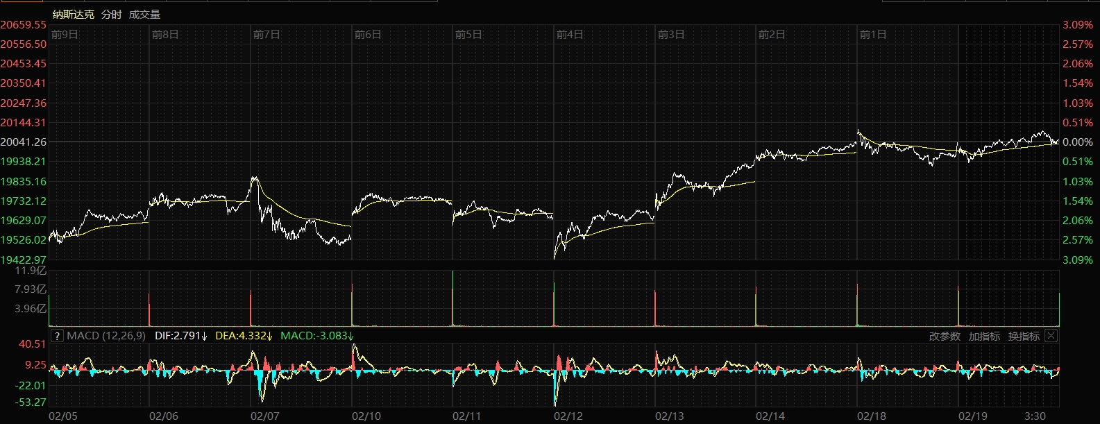 纳斯达克指数近十日变化趋势(来自东方财富)。