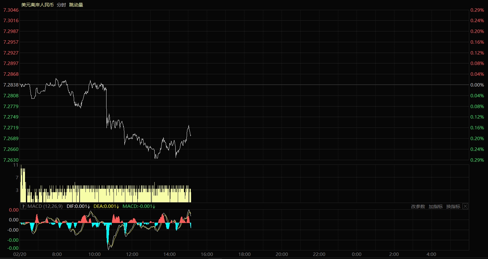 美元离岸人民币指数当日变化趋势(来自东方财富)。