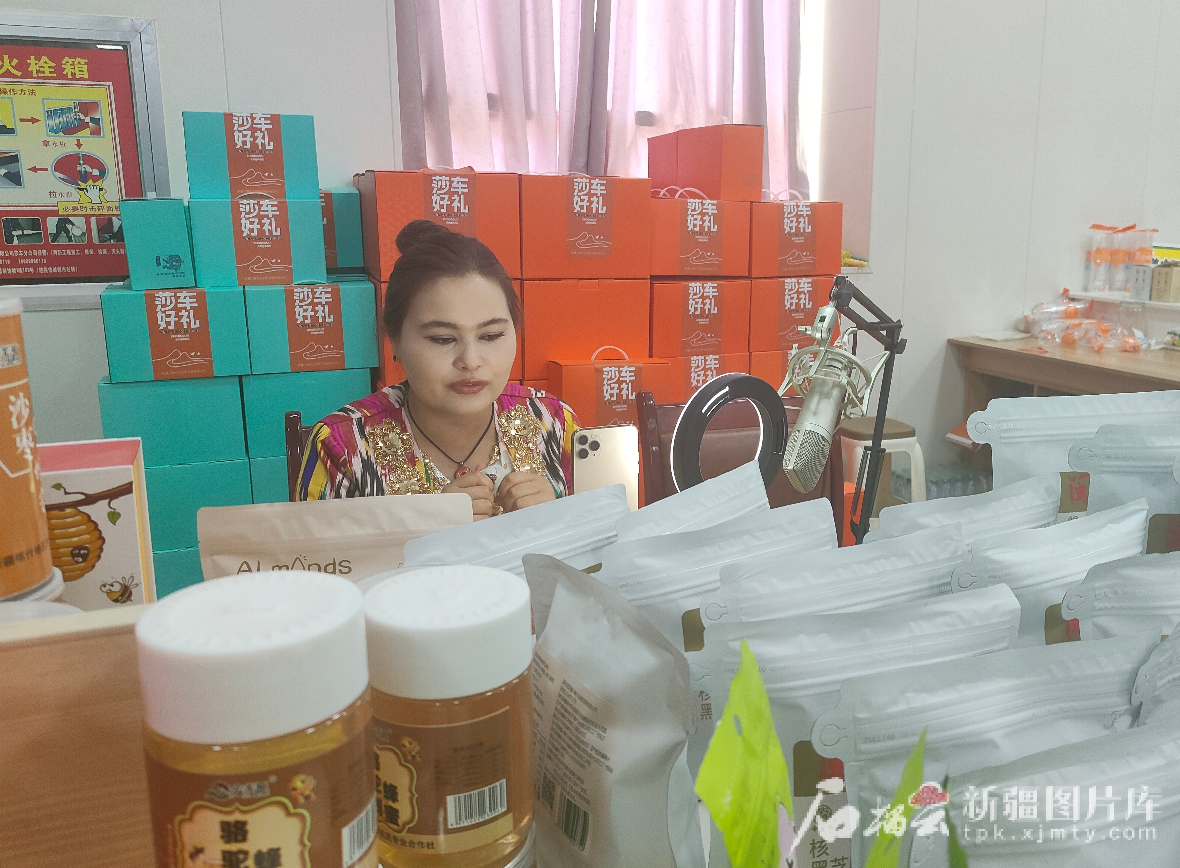 “欢迎来到直播间,点点关注点点赞……”7月21日,在位于阿克苏地区乌什县阿克托海镇库木奇吾斯塘村的幺幺直播基地,来自温宿县的主播丽娅面对镜头,做起了带货直播的示范。