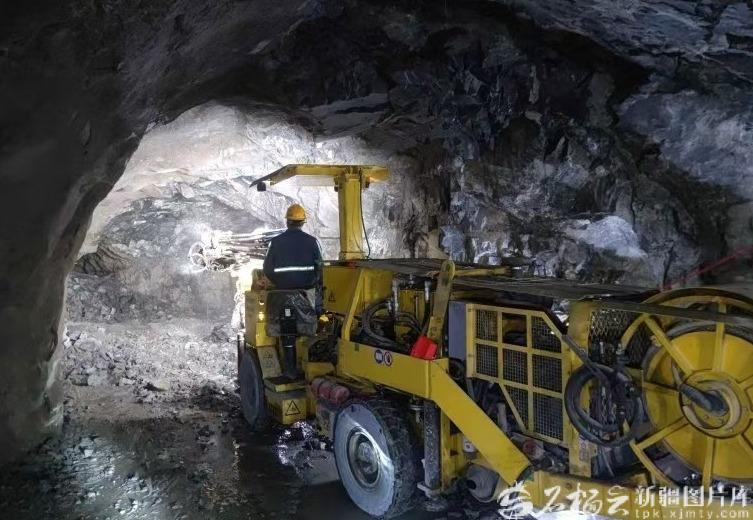 新疆喀拉通克矿业有限责任公司井下凿岩台车掘进作业中。新疆喀拉通克矿业有限责任公司供图