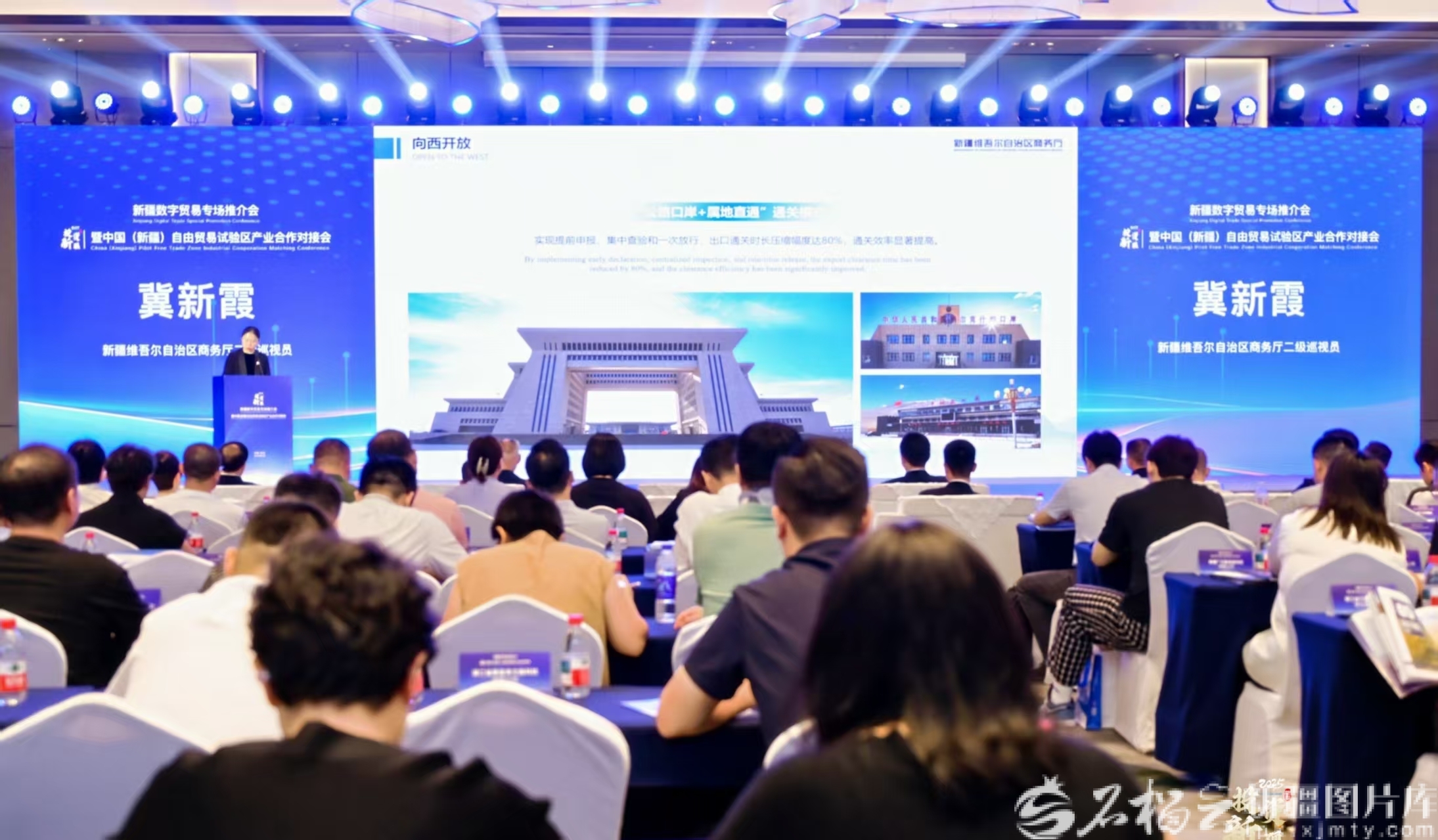 石榴云/新疆日报讯(记者 黑宏伟报道)9月25日,在浙江杭州召开的第四届全球数字贸易博览会上,新疆举办数字贸易专场推介会暨中国(新疆)自由贸易试验区产业合作对接会,通过介绍自贸试验区、口岸枢纽、产业体系及政策保障优势,展示新疆数字经济和数字贸易合作机遇,向全球递出合作“橄榄枝”。