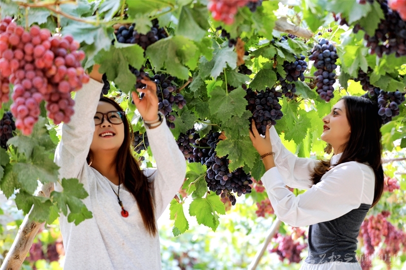 9月23日,游客在采摘葡萄。当日,新和县依其艾日克镇葡萄园丰收节采摘活动启动,吸引了不少游客前来体验采摘。魏浩东 摄