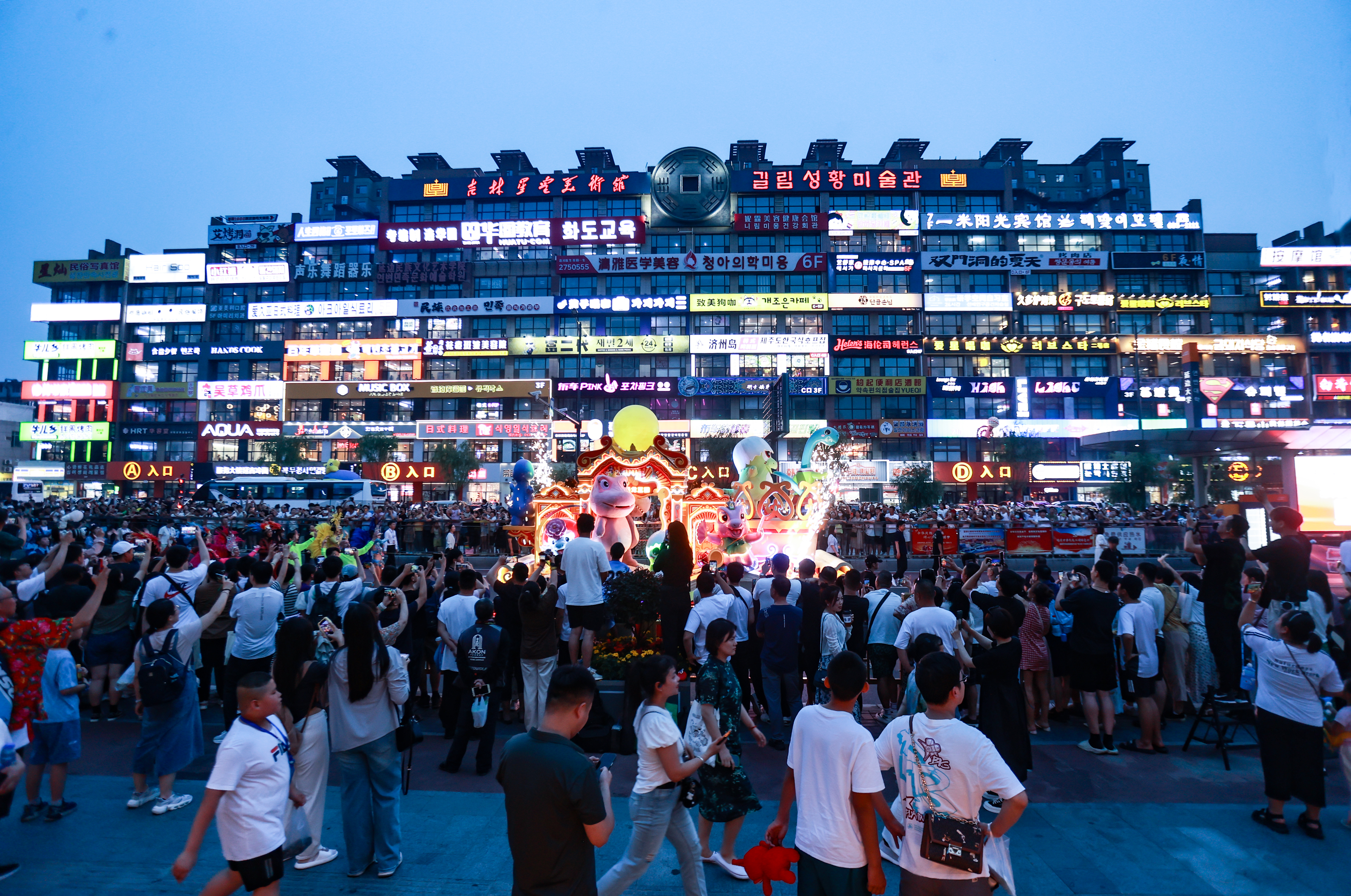 图为2024年6月拍摄的延吉网红弹幕墙及其打卡拍照区,周围一公里内分布约100家咖啡店。(受访单位供图)