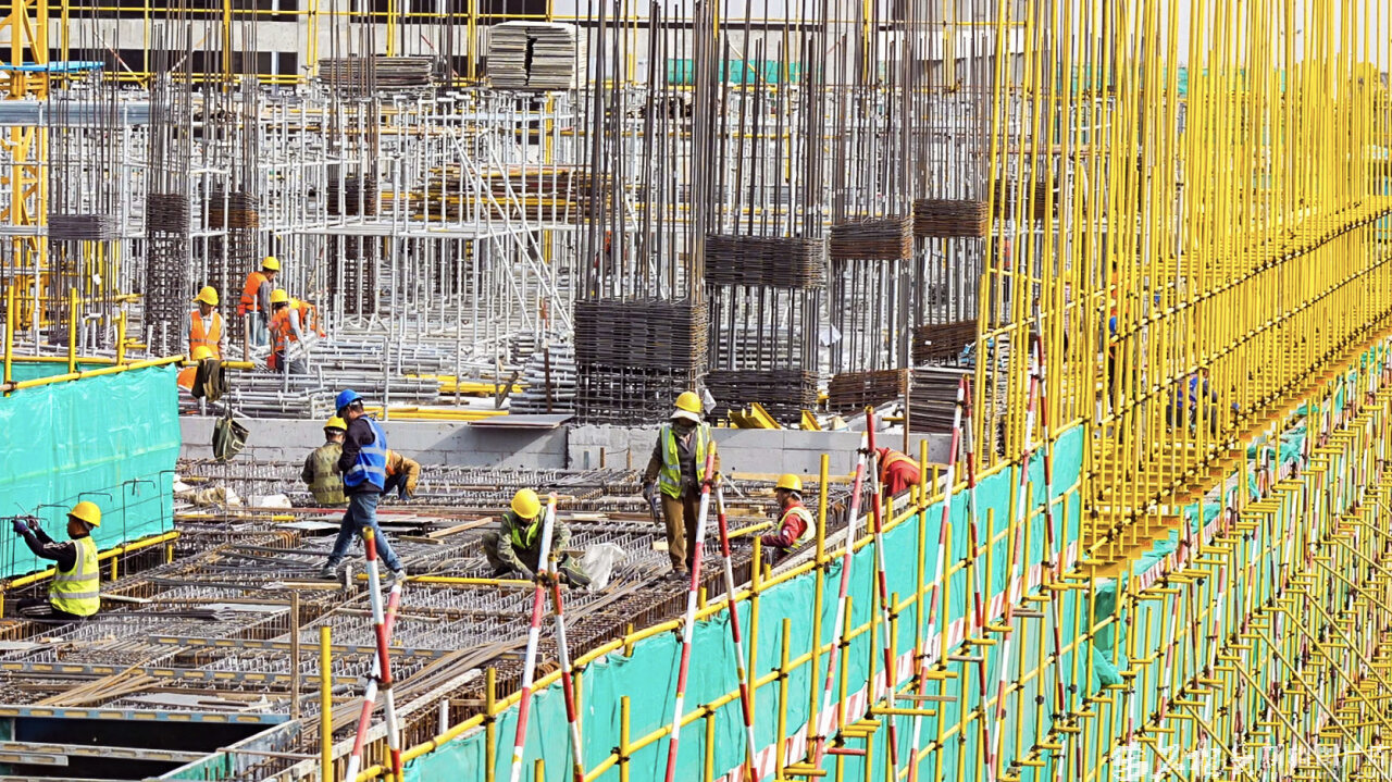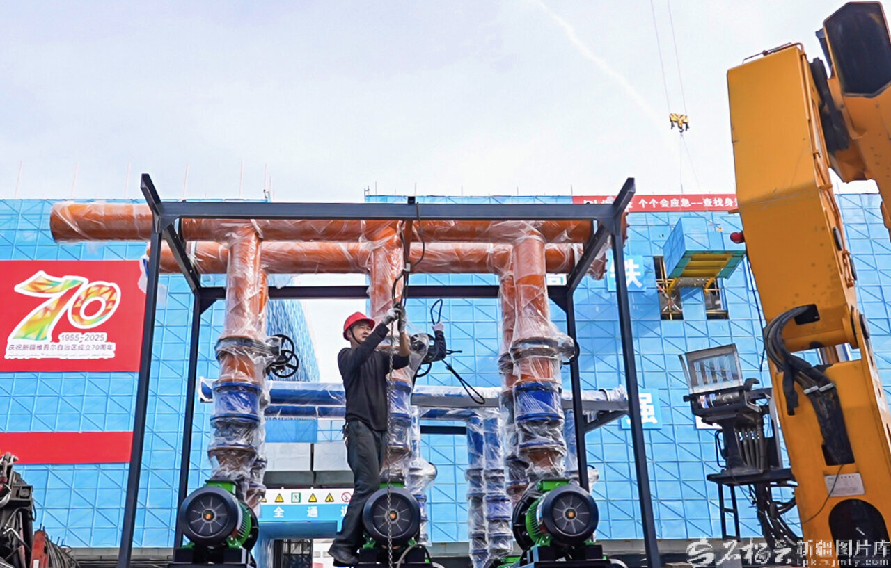 10月6日,在国际路港物流服务园区CD地块二区项目,中建三局施工人员正在施工。该园区建成后,将有力提升乌鲁木齐国际陆港区多式联运能级,推进铁路、公路、航空高效衔接。 天山网-新疆日报记者约提克尔·尼加提摄