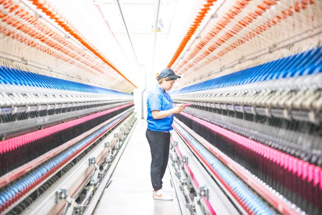 工人在乌苏旭恒佳纺织有限公司车间作业。