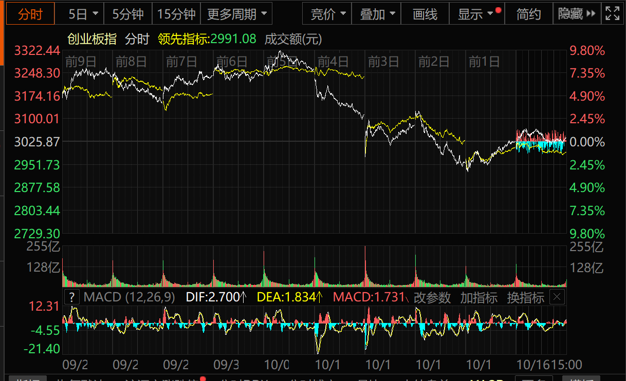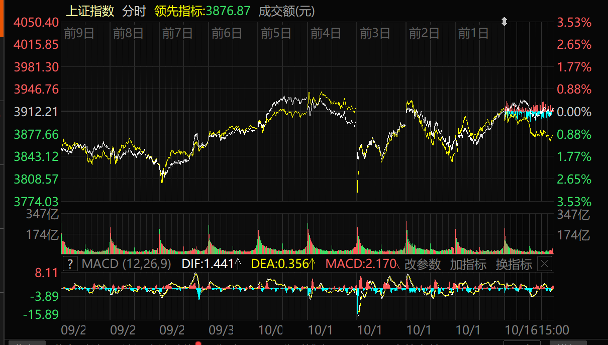 石榴云/新疆日报讯(记者 王永飞报道)10月16日,A股三大指数今日涨跌不一,截止收盘,沪指涨0.10%,收报3916.23点;深证成指跌0.25%,收报13086.41点;创业板指涨0.38%,收报3037.44点。沪深两市成交额跌破2万亿元,今日仅有19311亿元,较昨日缩量1417亿元。