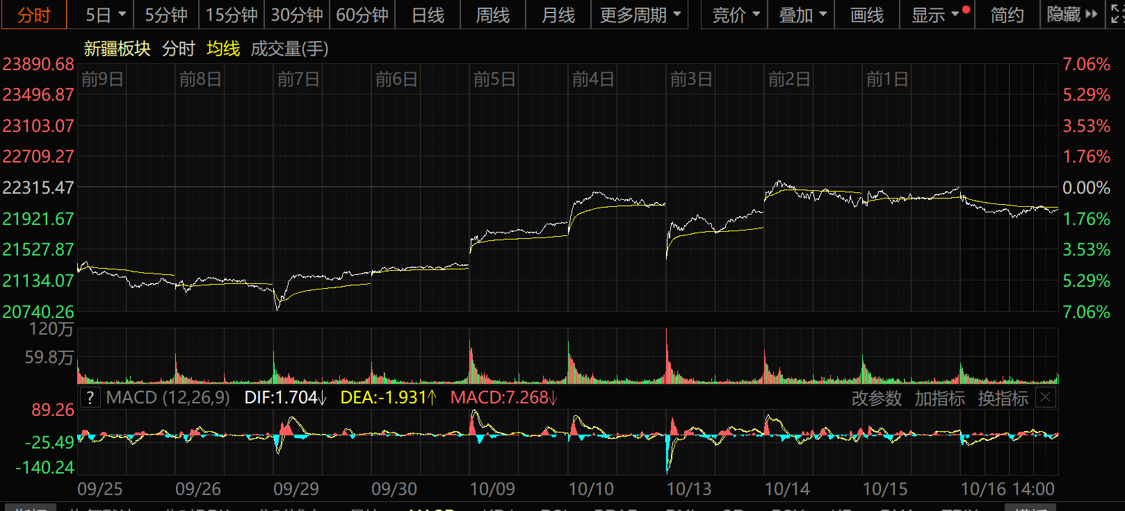 新疆板块指数近十日变化趋势(来源:东方财富)。