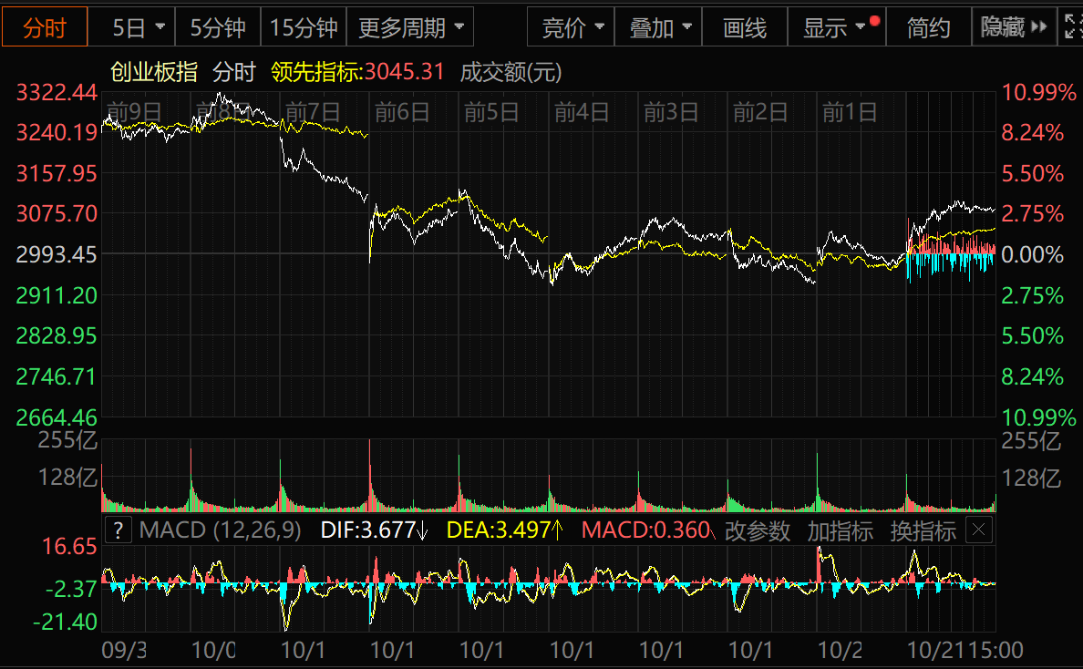 个股方面,上涨股票数量超过4600只,近百股涨停。深地科技概念持续走强,神开股份、石化机械双双2连板。CPO概念股全天走强,“易中天”光模块三巨头震荡拉升,源杰科技触及涨停创历史新高。苹果产业链表现活跃,环旭电子涨停,工业富联接近涨停。