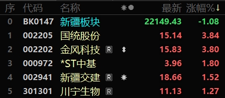 10月24日新疆板块股价涨幅排名(来源:东方财富)。