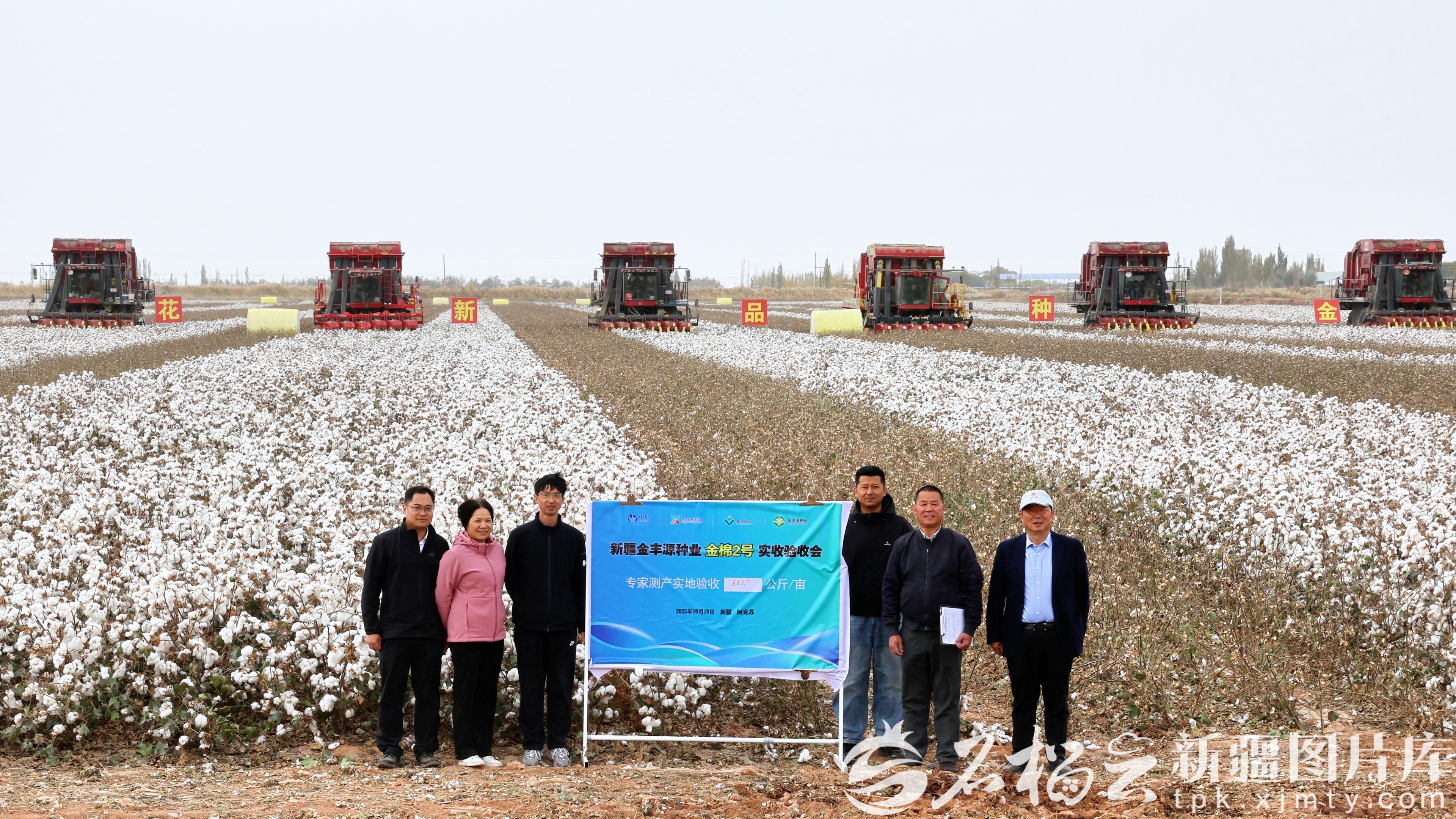 近日,国家农业生物育种重大专项成果展示活动在阿克苏举办,专家组对项目成果进行了测产。新疆金丰源种业有限公司供图