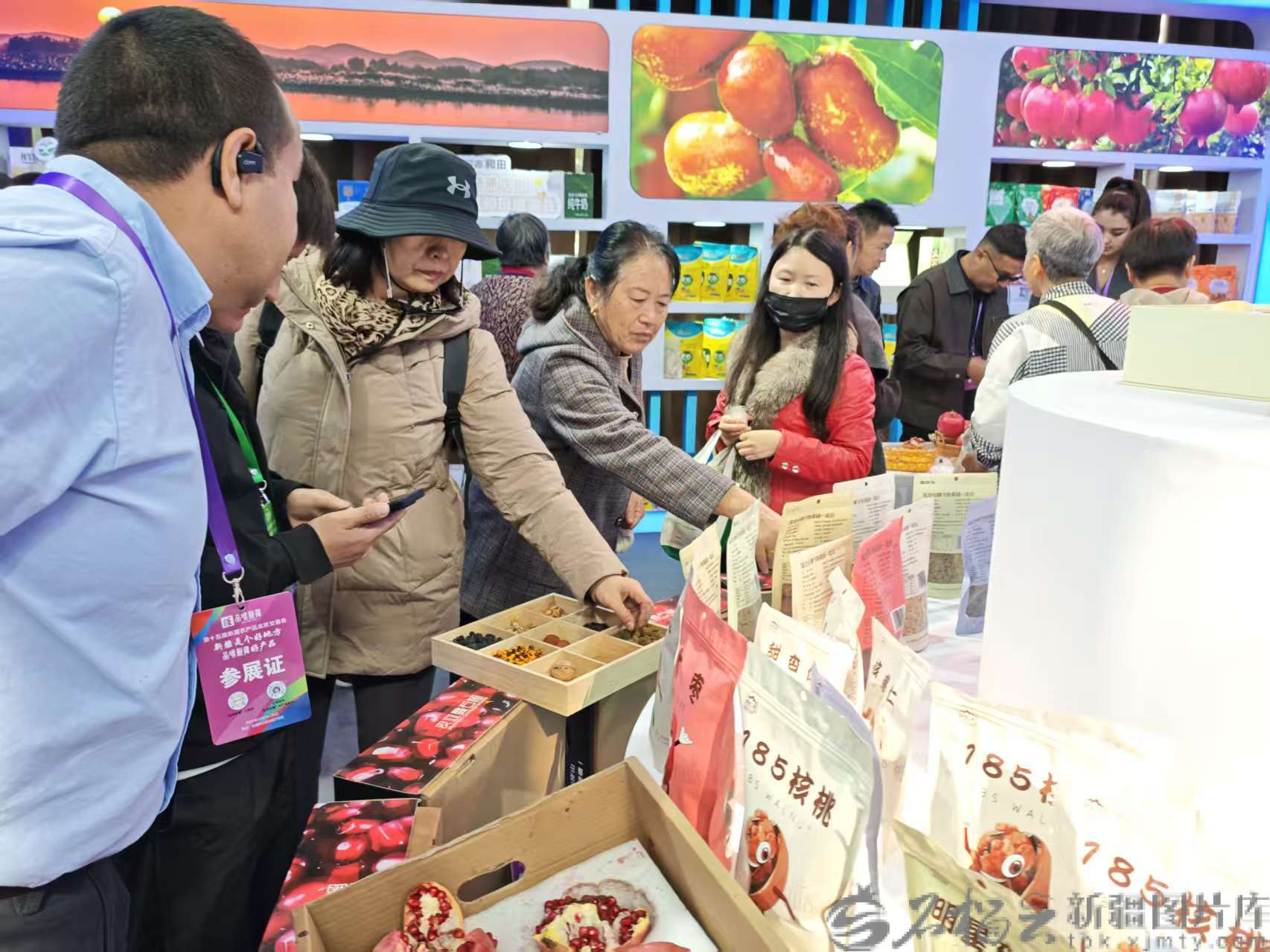 10月26日,新疆农产品北京交易会现场,消费者品尝新疆特色农产品。石榴云/新疆日报记者 刘毅摄