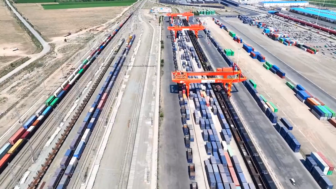 鸟瞰乌鲁木齐国际陆港区中欧班列集结中心。(无人机航拍)(受访者供图)