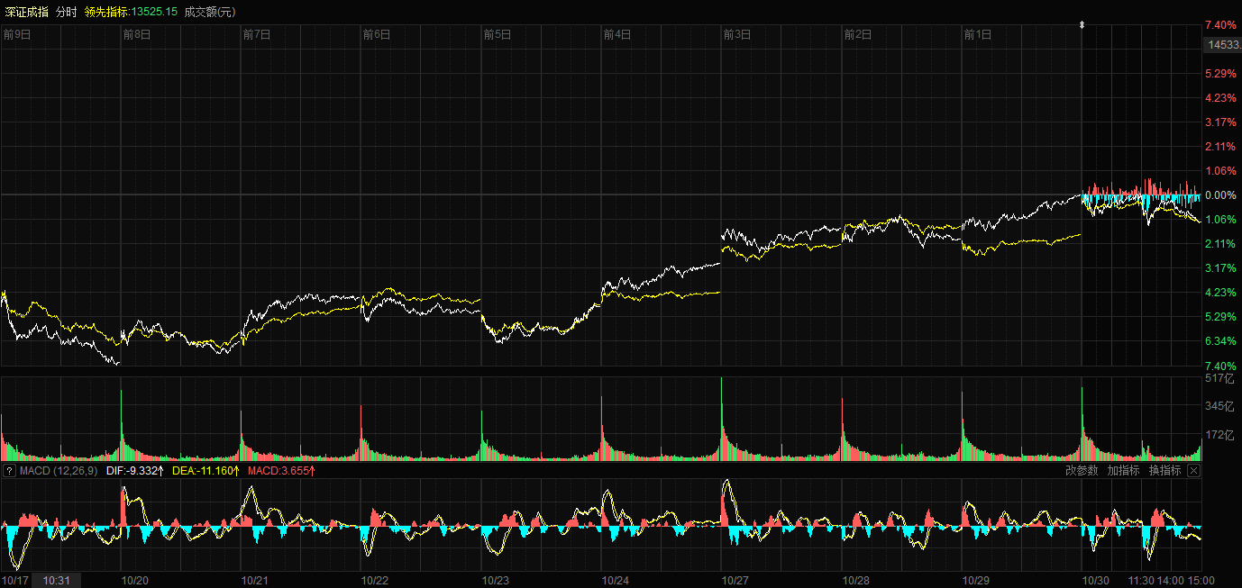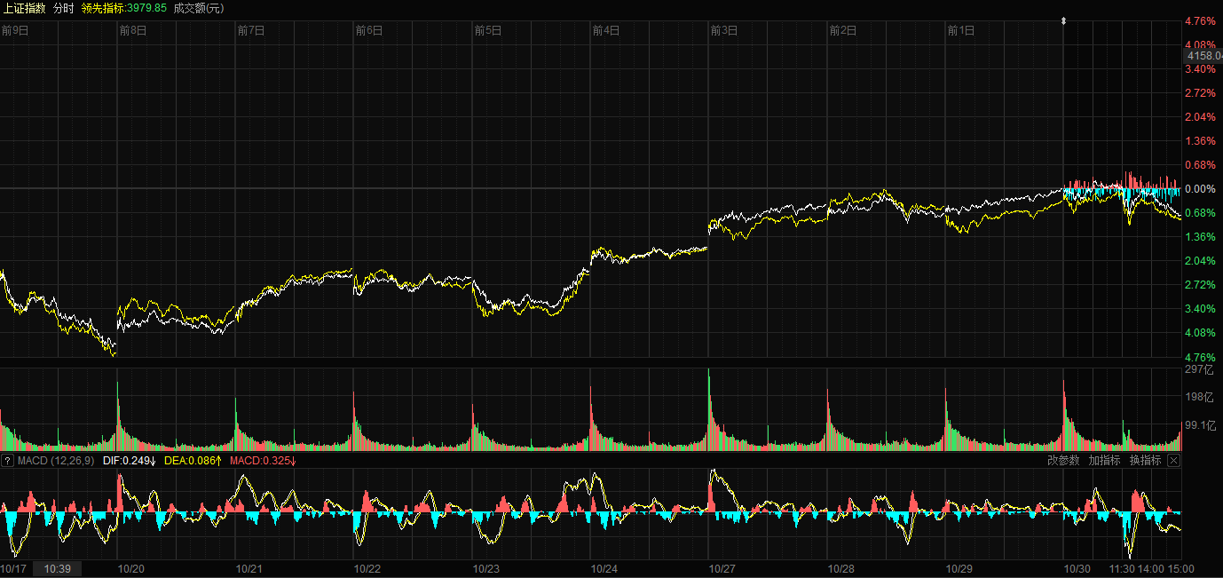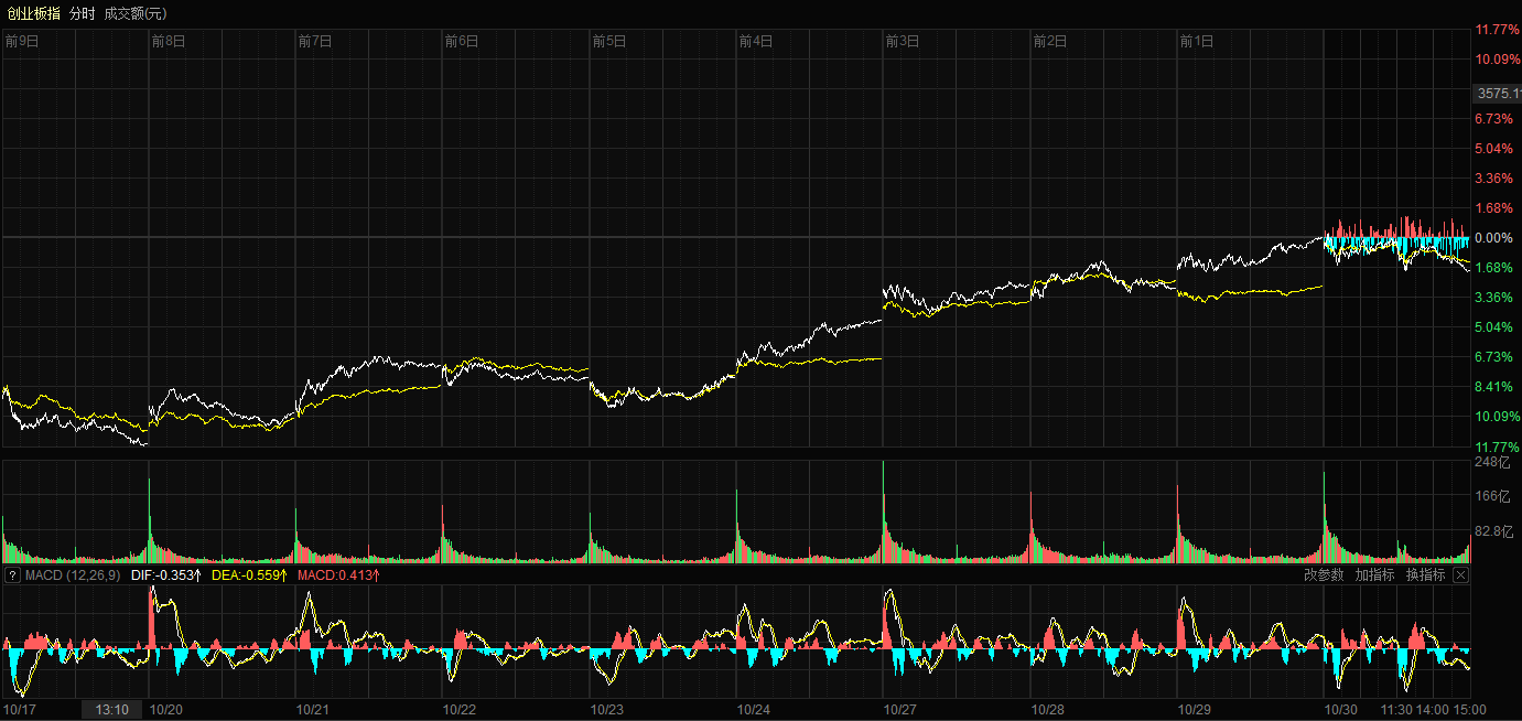 石榴云/新疆日报讯(记者 康颢严报道)10月30日,A股三大指数集体回调。截至收盘,沪指跌0.73%,报收3986.90点;深证成指跌1.16%,报收13532.13点;创业板指跌1.84%,报收3263.02点。沪深两市成交额达到24217亿元,较昨日放量1656亿元。