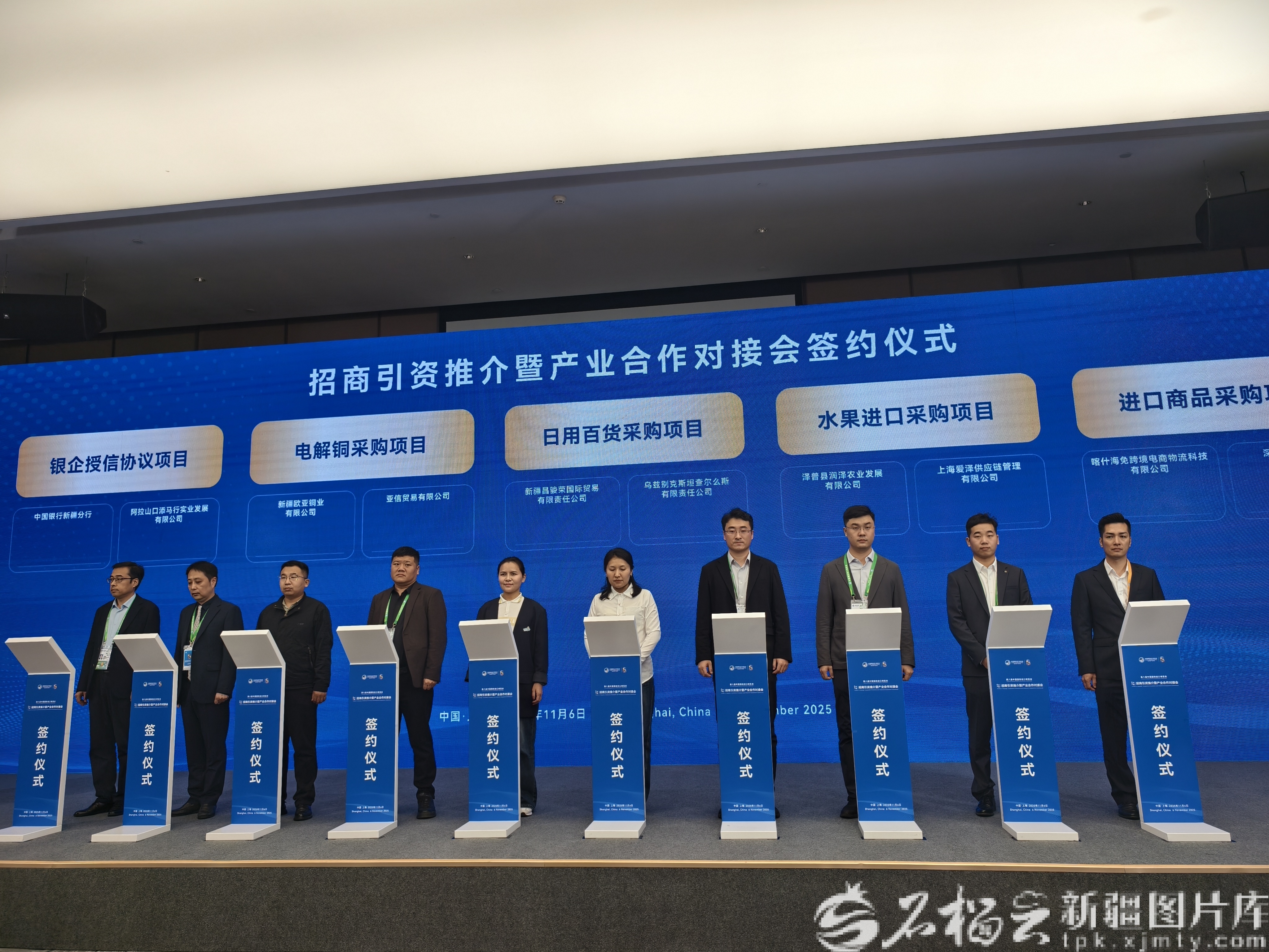 天山网-新疆日报讯(记者黑宏伟报道)11月6日,在第八届中国国际进口博览会上,新疆交易团举行“投资新疆——招商引资推介暨产业合作对接会”,共签约35个经贸合作项目,签约金额178亿元。