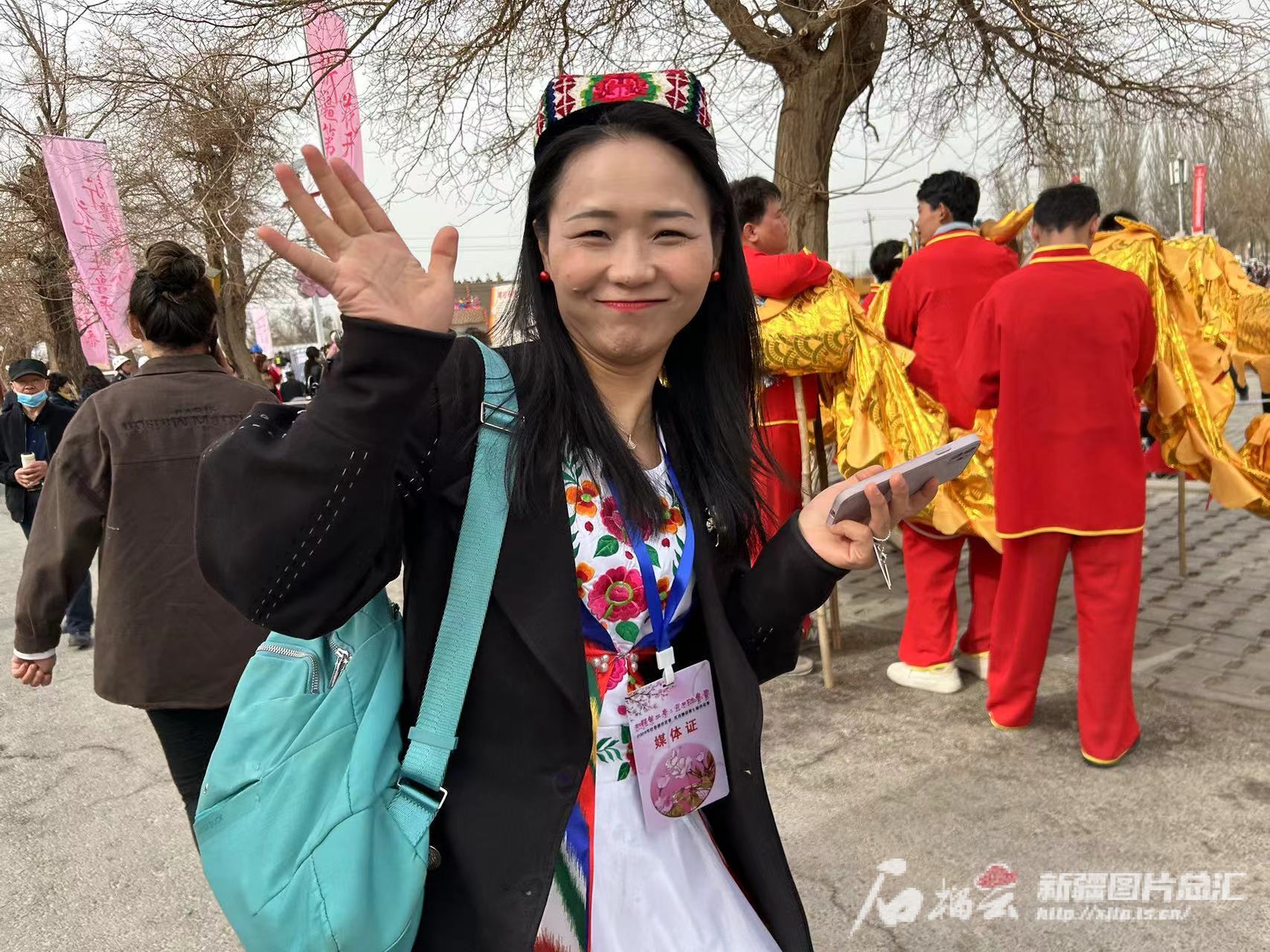 作为当地的宣传达人,夏镇宣传干部、“杏花姑娘”努尔比亚·沙拉木不仅在各大媒体的直播间客串,还在现场推介着托克逊当地的美景美食。