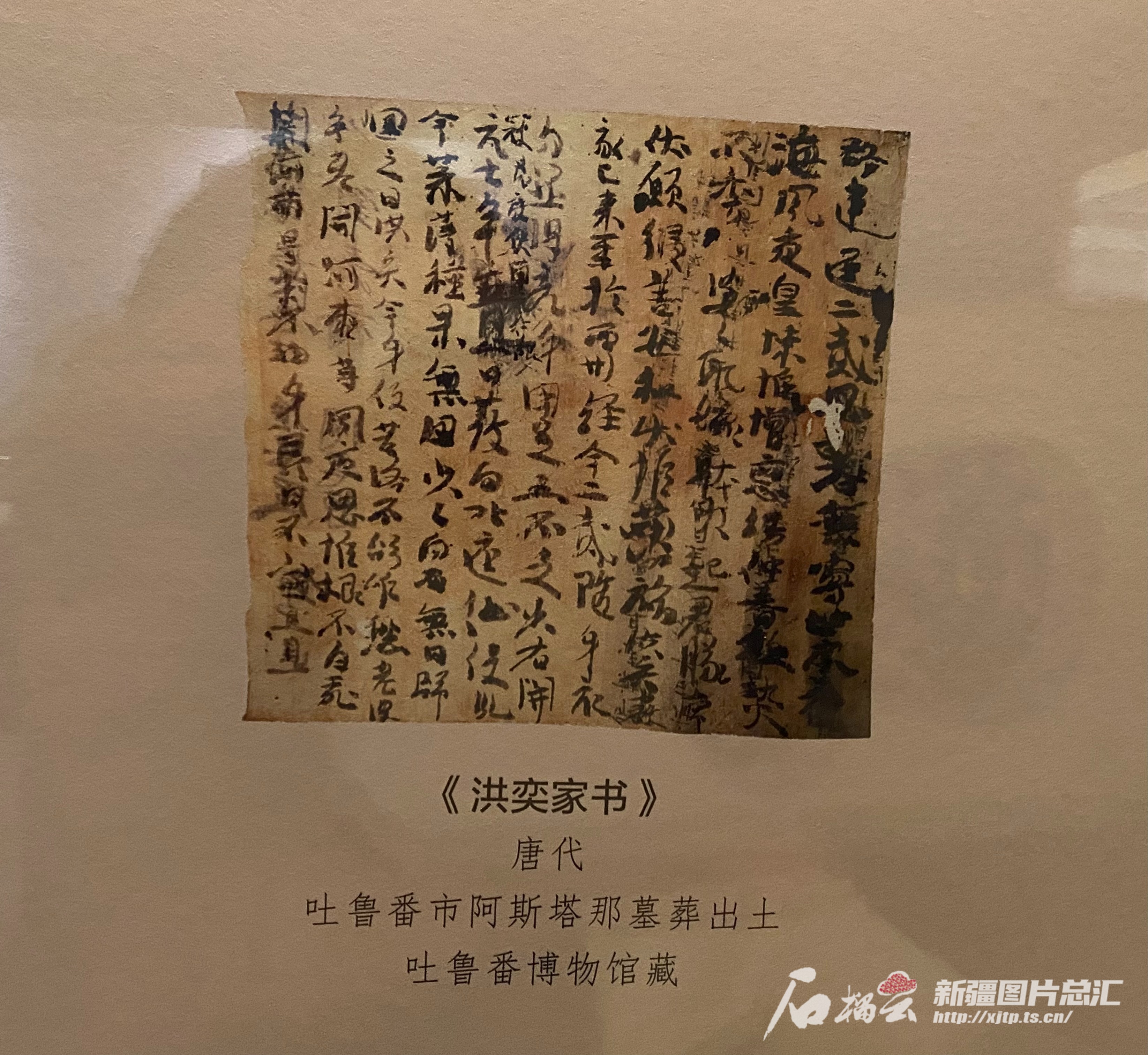 2004年,考古工作者在清理阿斯塔那古墓群的396号墓时,发现了一件正反两面都有文字的纸质文书。文书上记载的年代是唐开元七年(公元719年)。文书的正面是一份官方文书,背面则是一封唐代士兵的完整家书,因写信人署名“洪奕”,故被考古界称为“洪奕家书”,沉睡了1000多年的它终于重现于世。