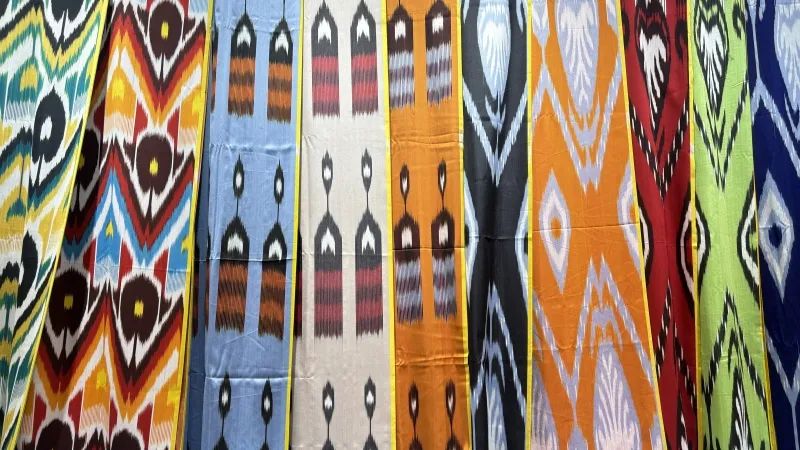 和田市吉亚乡素有“艾德莱斯绸之乡”的美誉,几乎家家户户都有人编织艾德莱斯绸。走进和田市吉亚丽人艾德莱斯绸织染非遗工坊,映入眼帘的是一片繁忙而有序的生产景象。工人手中的梭子来回穿梭,将生活中的美好变成精美的图案编织到艾德莱斯绸上。在这里,纹样设计已达到三十多种,个个光彩夺目,吸引着五湖四海的游客纷至沓来。