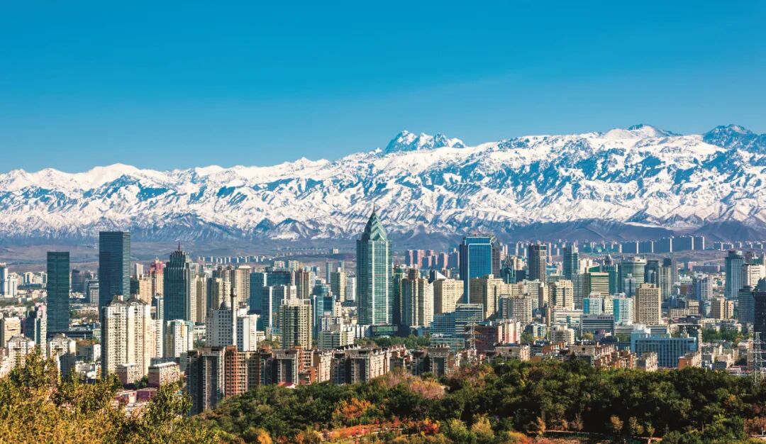乌鲁木齐市背后的博格达峰。摄影/李杰