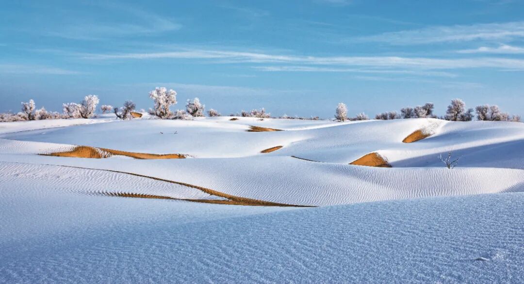 塔克拉玛干沙漠雪景。摄影/邓建中