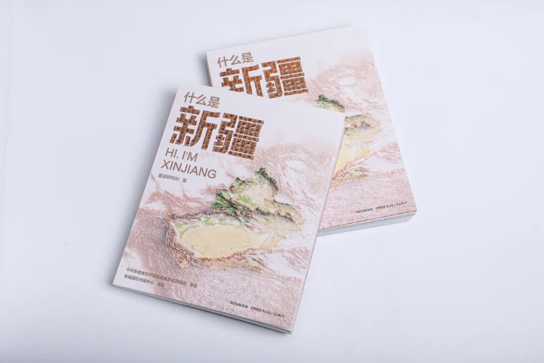 封面书名采用流沙金烫金,配以0.3mm精度浮雕新疆地图,指尖触摸之下,“三山夹两盆”的标志性地貌清晰可辨……