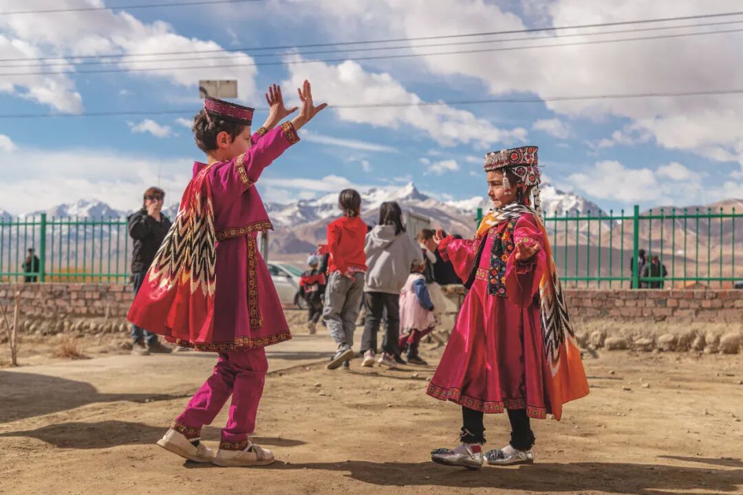 盛装跳着塔吉克族鹰舞的儿童。摄影/刘耕新