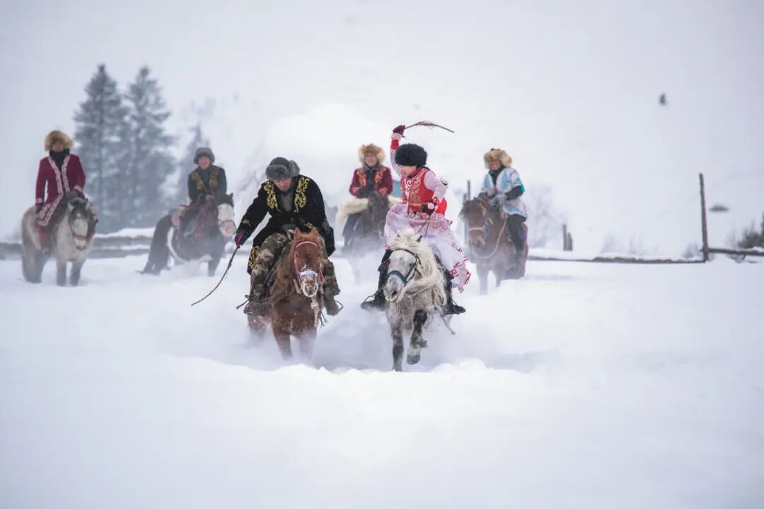 阿勒泰禾木乡举行迎新年活动“姑娘追”。摄影/刘耕新