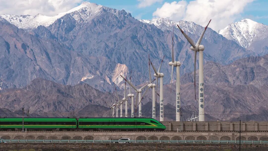 雪山下的兰新高铁与连霍高速。摄影/刘坤