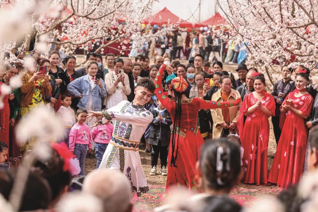 杏花树下衣袂翩跹。摄影/袁欢欢