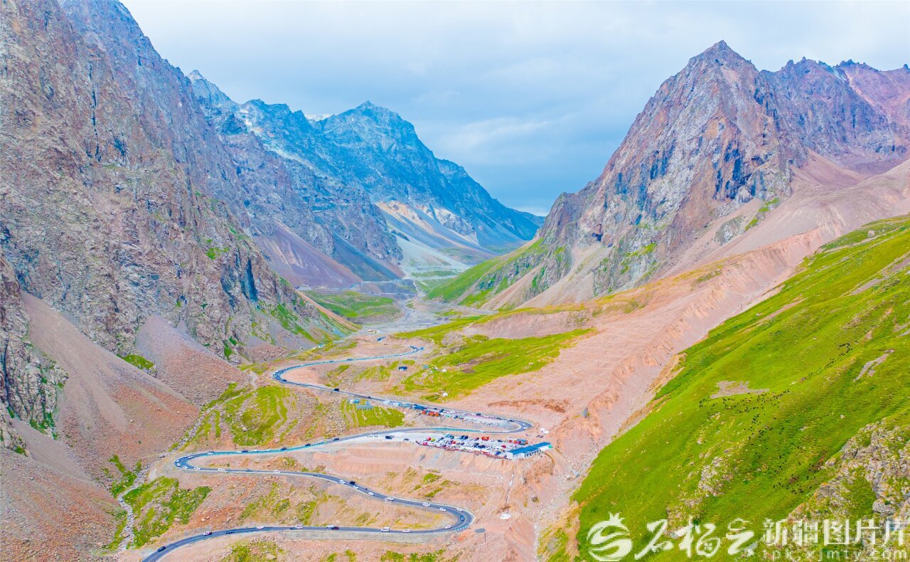 在乌苏市境内,独库公路北段乌苏段哈希勒根达坂,山路蜿蜒,宛如盘旋的巨龙,纵贯天山。汪志鹏摄