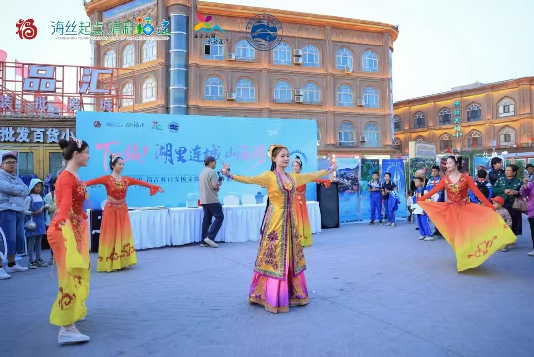 在赛里木湖游客中心广场、喀什古城景区核心街巷的地推现场,精心布设的文旅资源展示、精彩节目展演、互动问答挑战及非遗民俗体验吸引了大量游客驻足打卡和参与。通过可观、可感、可玩的沉浸式场景打造,融入湖里五缘湾游艇港、海上世界、“屿见闽南·时光幻境”、惠和石文化园,以及连城冠豸山、培田古民居等特色文旅元素,直观呈现两地多元魅力,更清晰串联起山海协作的资源互补成果。
