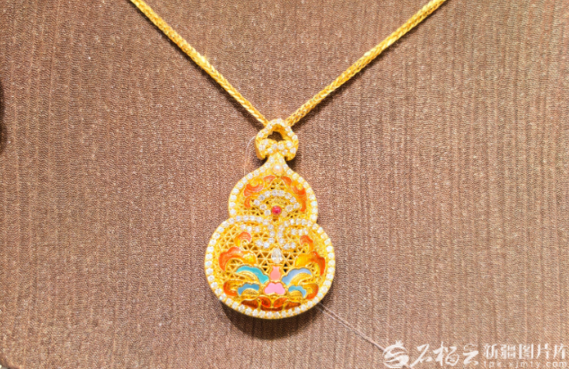 “这个宝葫芦纹样的珐琅吊坠,配裙子、搭卫衣都不错。”10月10日,乌鲁木齐市红山新世纪购物广场一家黄金饰品店内,古丽扎尔・阿不都热合曼给记者展示着刚入手的吊坠。