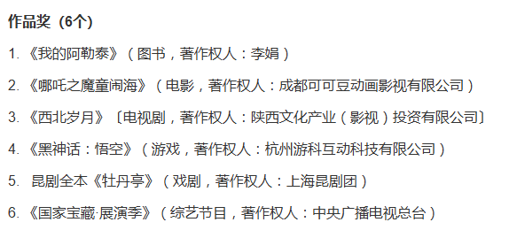 2025年中国版权金奖获奖名单。图/国家版权局网站