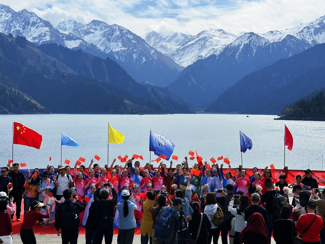 金秋十月,天山天池层林尽染,游人如织。国庆假期,天山天池景区精心策划并启动国庆、中秋系列特色文旅活动。从爱国主义歌曲传唱到营地狂欢,从环湖竞技到古风雅韵,九大主题活动贯穿双节假期,全方位展现景区人文魅力与自然之美,为游客打造沉浸式文旅体验,持续提升景区知名度与美誉度。海内外游客在这里共跳《麦西热甫》,上千名游客齐唱《歌唱祖国》,嘹亮歌声回荡山间,让游客在互动中感受家国情怀,度过了一个美好的假期。