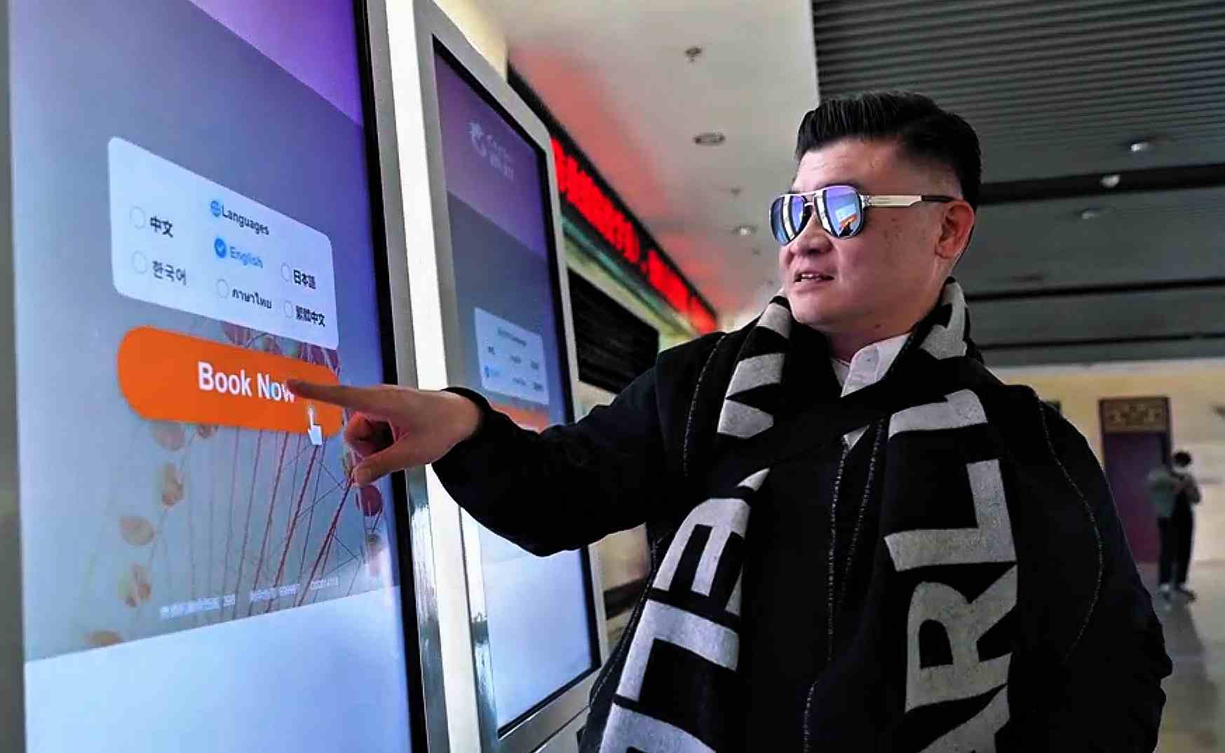 3月16日,马来西亚游客在多语种、多币种智慧购票系统上自助购票。移志向 摄