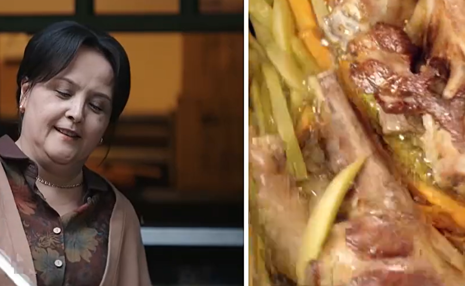 剧中做抓饭的场景中,锅里油亮亮的米粒和羊排、鲜艳的胡萝卜令人垂涎欲滴。