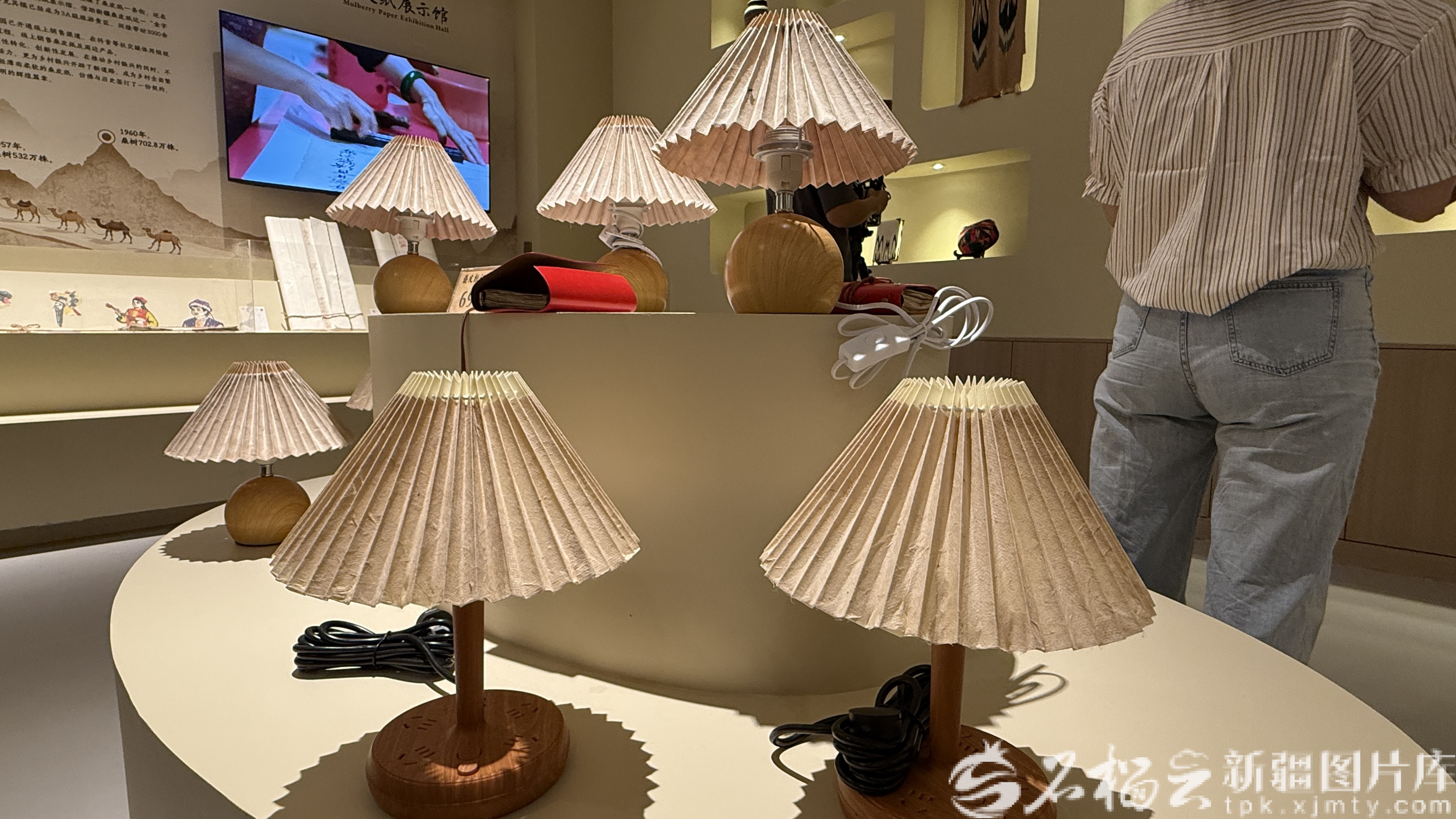 墨玉县普恰克其镇布达村桑皮纸展示馆内陈列的桑皮纸台灯。石榴云/新疆日报记者 拍热扎提·阿不都摄