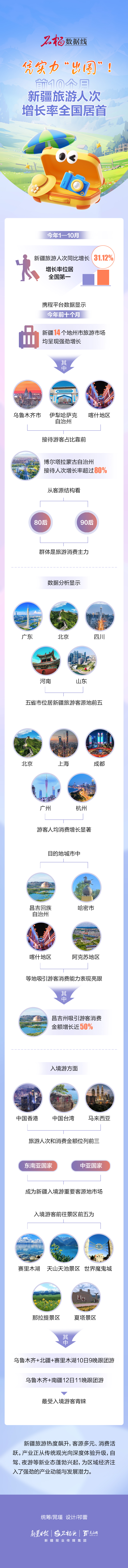 今年1—10月,新疆旅游人次同比增长31.12%,增长率位居全国第一。