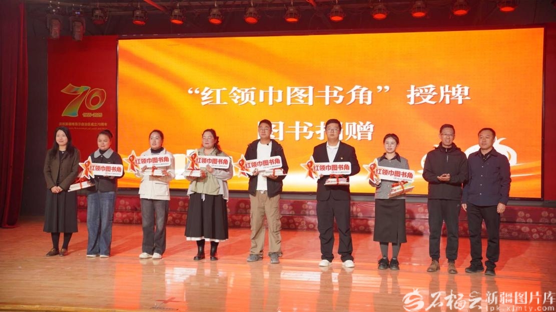 活动现场举行了“红领巾图书角”授牌与图书捐赠仪式。在全国少工委办公室指导下,中国少年儿童新闻出版总社在全国发起“红领巾图书角”建设,喀什地区6所学校及单位成为新疆首批建设单位。中国少年儿童新闻出版总社联合新疆电子音像出版社、新疆文化出版社,向学校捐赠了《习近平讲故事(少年版)》《我的家在中国——五十六个民族是一家》等一大批优质书报刊。不仅丰富了乡村少年的阅读资源,也为基层少先队组织建强了文化阵地。