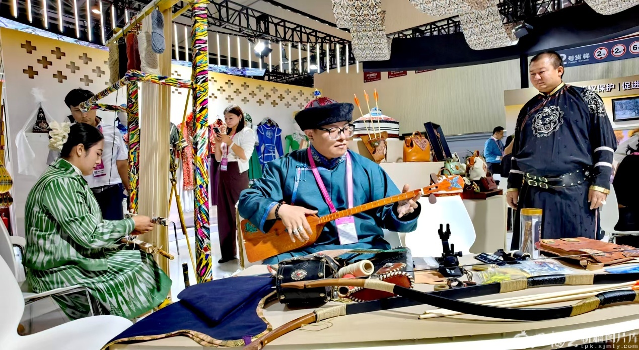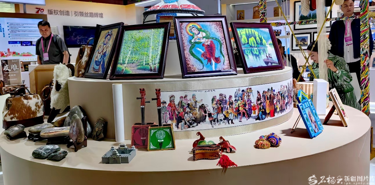 版博会新疆展区里的非遗展示。石榴云/新疆日报记者 高芳摄