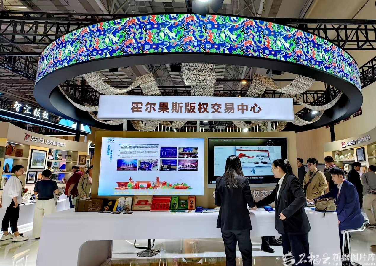 霍尔果斯版权交易中心的专题展示区,用亮眼的成果证明了版权如何为新疆文化“出海”搭建桥梁,成为中华文化对外传播的重要窗口。