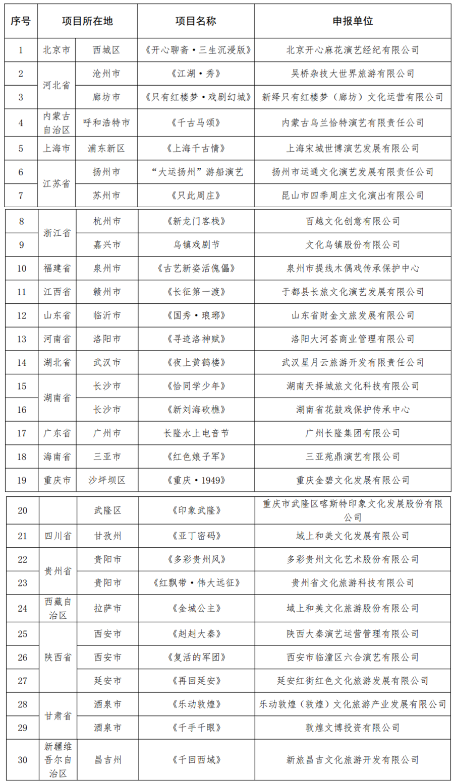 在各省级文化和旅游行政部门推荐申报基础上,经专家评审和综合研究,确定了第二批全国旅游演艺精品名录入选项目名单,30个项目将给消费者带来新选择(名单如下)。