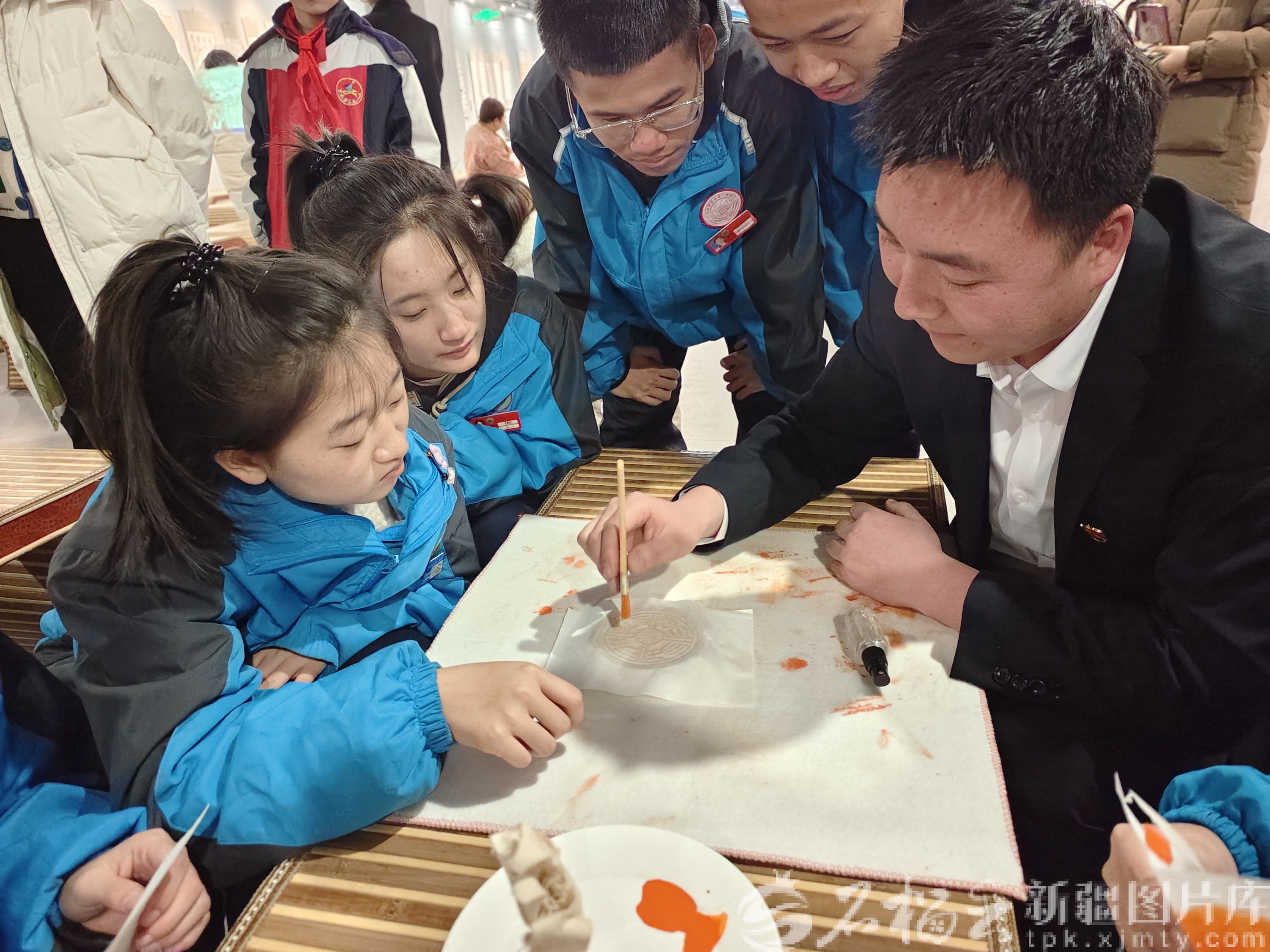 刘潇(右一)向学生讲解文物知识。受访者供图