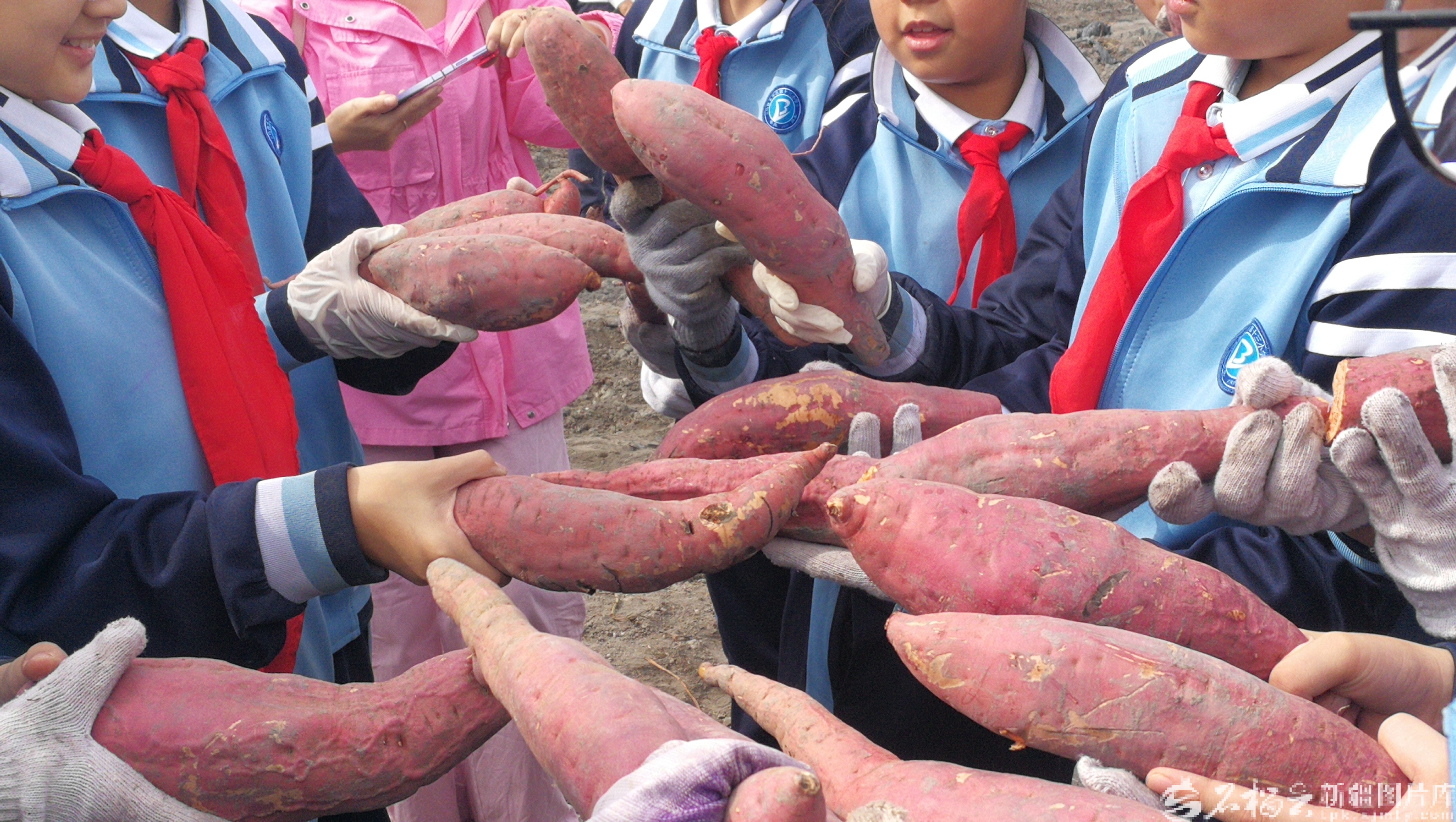 孩子们展示着自己挖的红薯。 韩景敏 摄