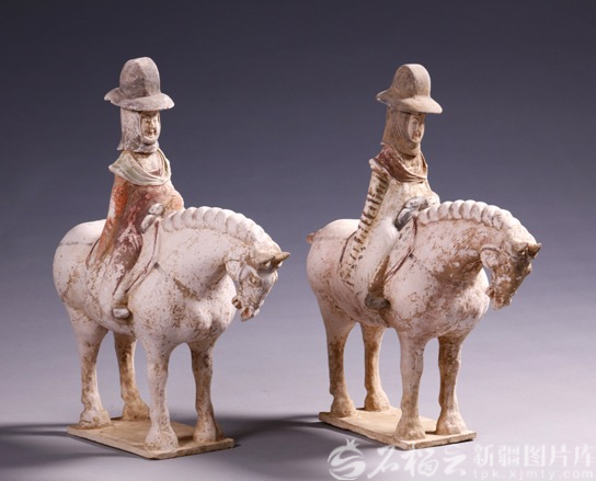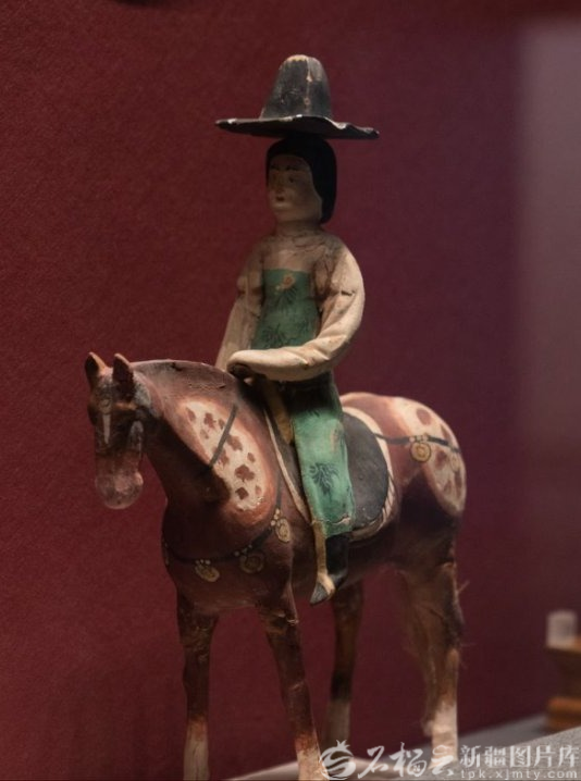 新疆博物馆收藏的戴帷帽骑马仕女俑。石榴云/新疆日报记者 银璐 摄