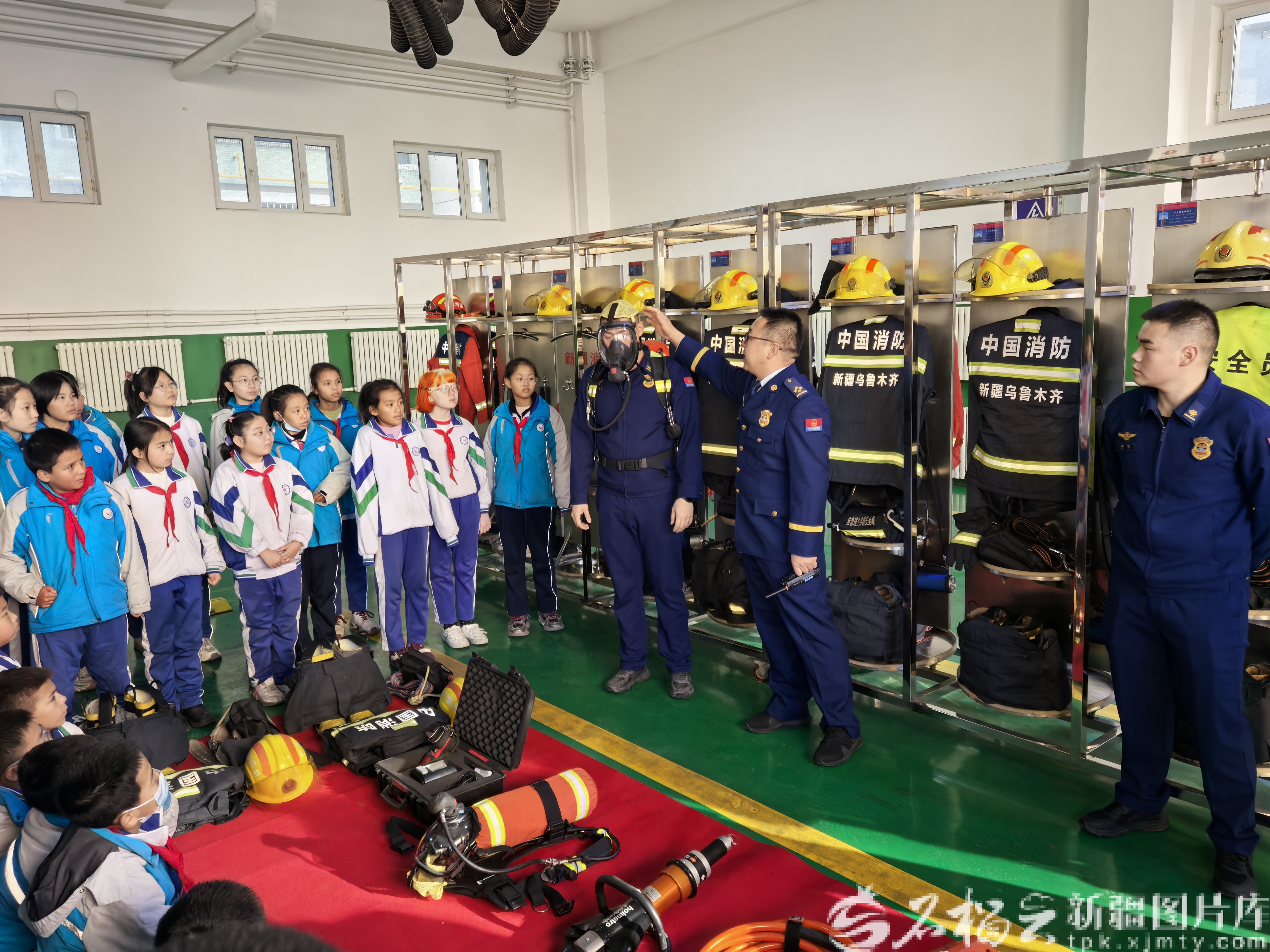 11月7日,乌鲁木齐市第83中学学生在乌鲁木齐市消防救援支队新市区消防救援大队长春南路消防站,上了一堂行走的消防安全主题班会课。高俊摄