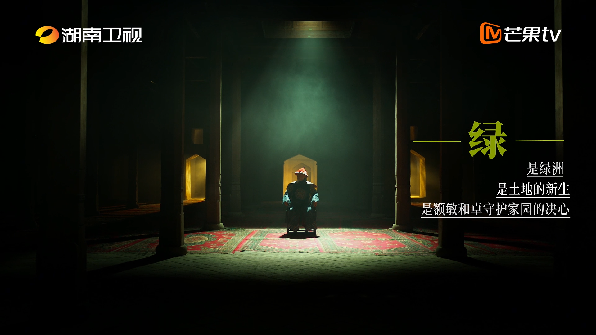 “红”是班勇屯田戍边,为汉王朝第三次打通西域的新生;“金”是唐朝玄奘与高昌国国王麹文泰的相遇,闪耀于丝路的智识之光;“蓝”是边塞诗人岑参笔下浸染家国情怀的诗兴,在边塞烽烟与市井烟火中回荡;“绿”则是清朝额敏守护家园、报效中央的坚定信念,让绿洲生生不息。四色交织,共同勾勒出吐鲁番与家国血脉相连的壮丽画卷。