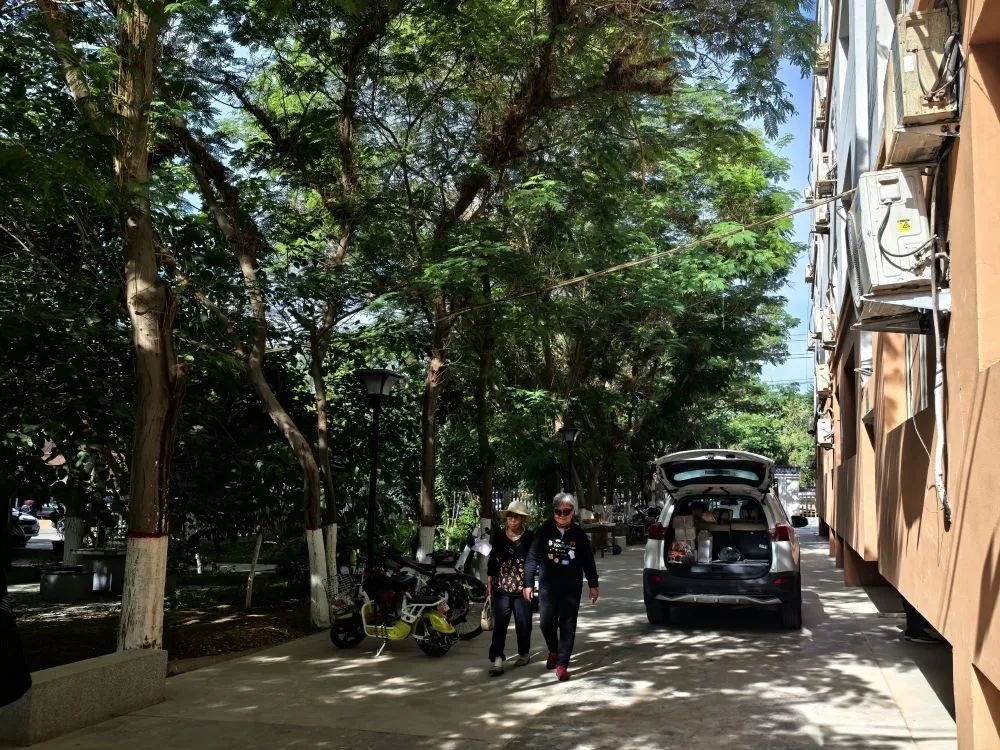 绿树掩映的步道上,年迈的夫妻在悠闲散步;整齐排列的充电桩前,新能源车有序充电……这是记者在吐鲁番市高昌区高昌路街道绿园社区绿园小区看到的景象。作为当地最早一批修建的老旧小区,绿园社区如今正焕发新生。
