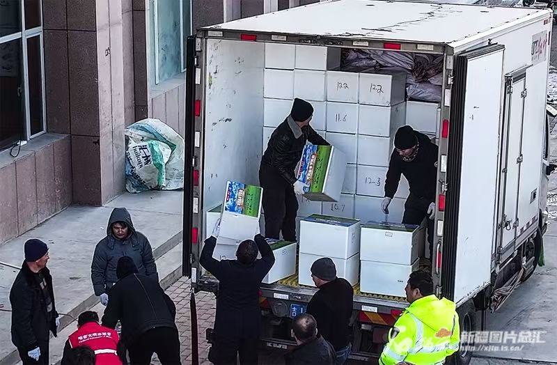 哈密市伊州区柳树沟乡一棵树村村民在装运发往河南的冰碴驹俐。曹新加 摄